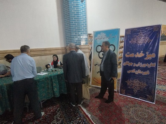 میزخدمت اداره ورزش و جوانان شهرستان قدس در مصلی نماز جمعه برپاشد.
